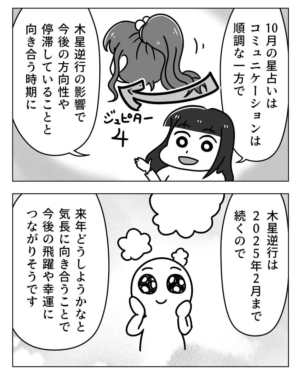 10月はコミュニケーションが良好な一方で 木星逆行の影響で 今後の方向性や停滞していることと向き合う時期に入っていきます。 木星逆行は2025年2月まで続きますので 「来年どうしようかな~」と 気長に向き合うことで 今後の飛躍や幸運につながりそうです。